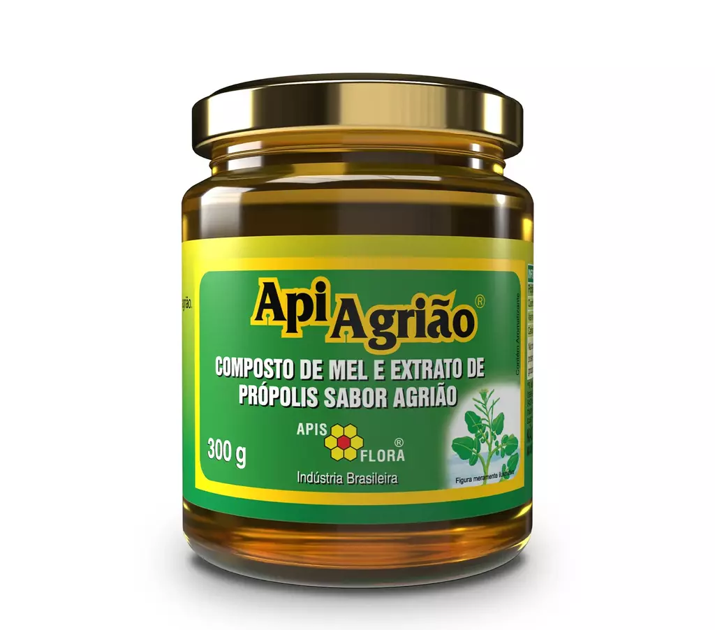 APIAGRIÃO®: Mel Puro com Própolis e Extrato de Agrião - Suporte Natural 300g